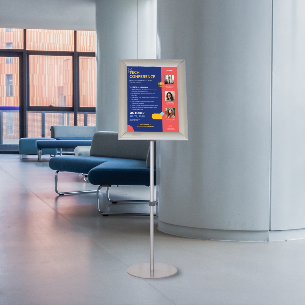Our double-sided poster stands allow you to effortlessly display posters on both sides, maximizing exposure and information sharing. Available in A0, A1, A2 and A3. Includes double sided poster frame and lockable castors, and width adjustable for landscape and portrait display.